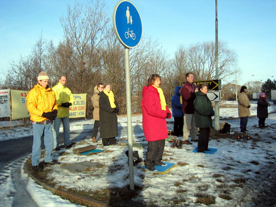 【明慧网2003年1月15日】1月13日德国法轮功学员柏林中领馆前为期三天的请愿和烛光守夜活动进入第二天,柏林及临近城市的法轮功学员参加了这次全球同步请愿活动。请愿活动揭露了江氏集团对法轮功学员迫害的又一次升级,要求立即停止对法轮功学员的残酷虐杀,同时声援法轮功学员在美国伊利诺伊州地方法院提起的对江氏及其一手成立和操纵的610办公室“灭绝种族罪”的控诉。