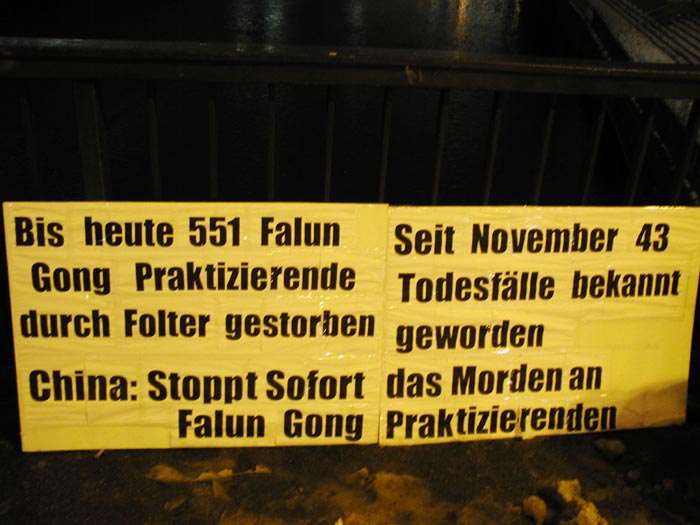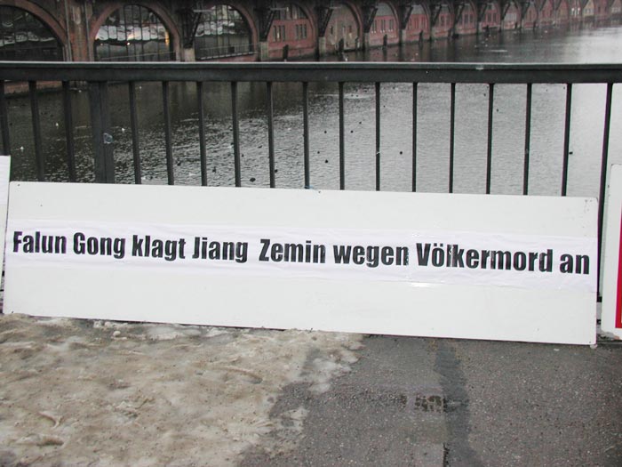 亚洲自由电台,新!唐!人:电视台和大.纪.元;时报对请愿活动进行了采访。本次活动协调人之一的郑女士在接受记者采访时说:“江XX在去年四月访德期间被德国人权组织‘为受迫害的民族 ’以‘反人类罪’罪名控诉。该控诉只因江作为被邀访问的国家客人而享有赦免权未能立案,但如果江今后因私到德国,他将立即再度受到法轮功学员及人权组织‘反人类罪’及‘灭绝种族罪’的控诉并将受到法庭的传唤。去年六月二十六日德国议会全票通过《德国国际刑事法典》。该法典是一部专门为‘灭绝种族罪’ ,‘反人类罪’及战争罪而制定的特别刑法典。根据这部法典,任何个人,包括国家元首,如果犯有该法典所定义的罪刑,德国法院都可以对其进行追诉。”郑女士称:“江氏集团自1999年七月发起和操纵的对法轮功学员实施的系统的意在铲除法轮功的残酷迫害和虐杀符合了《德国国际刑事法典》‘灭绝种族罪’的第一款第一、第二及第三项 和‘反人类罪’ 第一款第一、第二、第五及第六项的规定。根据该法典第六条及第七条的规定,江可因该两条罪名而被判处无期徒刑。”
