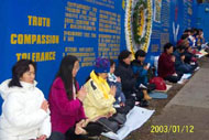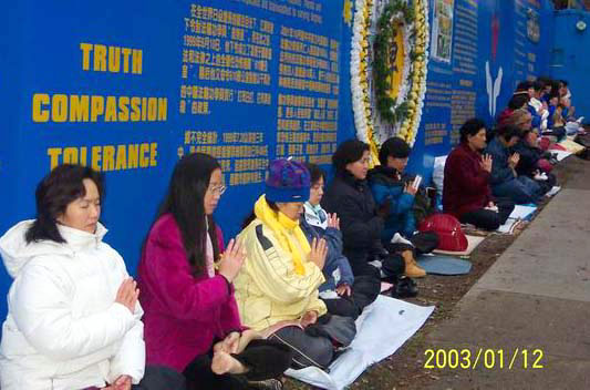 【明慧网2003年1月15日】2003年1月11日深夜,从获悉到,去年11月以来法轮功学员被致死人数不断上升,又有43位大法弟子仅因为信仰真善忍被残酷地剥夺了生命,温哥华和西雅图地区的许多学员自发地筹备参加1月12日至14日世界范围的三天呼吁活动,在温哥华中领馆前和平请愿,强烈要求立即停止江罗集团对法轮功修炼人“群体灭绝”式的虐杀和镇压。
