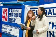 13日中午1点,举行新闻发布会,揭露江罗政治流氓集团残酷迫害大法弟子的新罪行,呼吁民众关注,共同制止屠杀。至截稿时为止,CTV、世界日报、新!唐!人:电视等数家媒体对呼吁活动进行了现场采访。