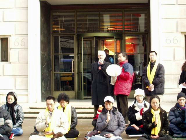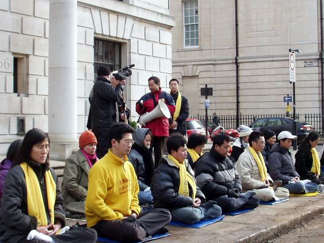 【明慧网2003年1月15日】自1月12日开始,英国大法弟子分别在伦敦中国大使馆、曼彻斯特领事馆前进行3天的和平请愿。13日在伦敦、曼城两地又分别举行了新闻发布会,揭露江氏政治流氓集团对法轮功的野蛮