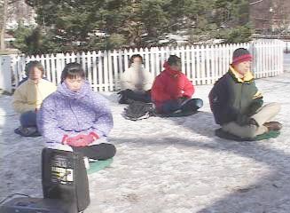 俄罗斯学员在中使馆前发正念,呼吁制止虐杀!(图)