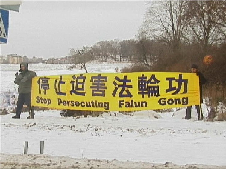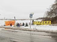 图片:瑞典斯德哥尔摩学员在风雪中呼吁制止江氏集团的残酷迫害