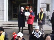 在以往的多次和平请愿活动中,街对面的中使馆常常以各种方式干扰新闻发布会。常用的手段是在法轮功新闻发布会的时候,使馆人员会使用高音喇叭放足音量播放“革命歌曲”以此来进行破坏。此种做法曾引起临街居民的抱怨和投诉,连警察也对中使馆的出格行为感到不可理喻。