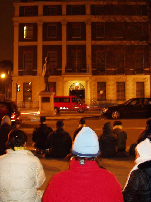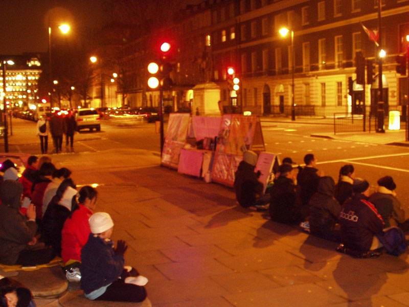 这是一年的最后一夜,在这又黑又冷的晚上,60多位日本大法弟子从各地赶来聚齐大使馆前,寒风中张扬着“法轮大法好!”“停止迫害法轮功”的横幅。一位怀抱婴儿、领着学龄前儿童的少妇说:“过年本来是庆祝的日子,可想到大陆每天发生的残酷迫害,我们必须来这里表达心声。”迎来了晨光,大家又分赴各处神社、寺院,向前往参拜的人群分发资料、讲清真相。