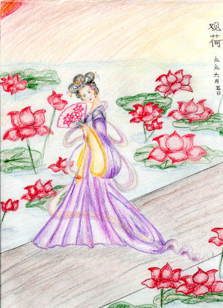 【明慧网2003年1月27日】元元7岁开始修炼,现在13岁的她已经是炼功点其他小弟子的辅导员了。元元的天目也是开着的,她说最近看到的法轮更多了。元元喜欢画荷花,因为荷花圣洁。这是她12岁时做的画。