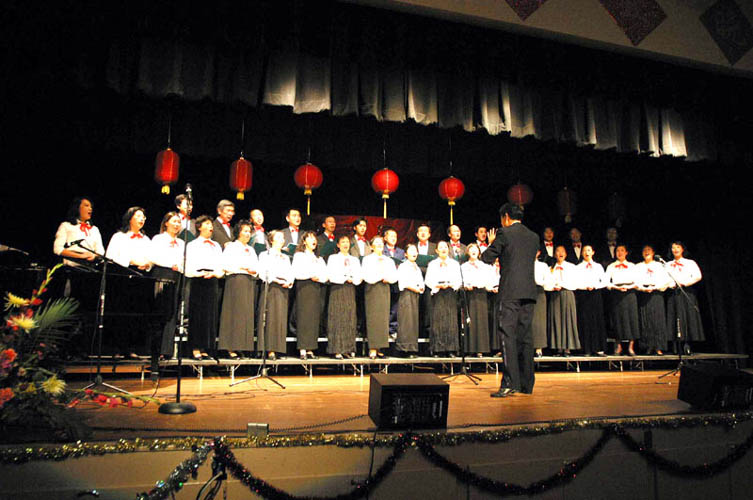 由旧金山湾区法轮功学员组成的光明合唱团合唱了《我是个修炼者》、《二人传》等歌曲,显示出大法修炼者的精神风范;由十几名西方法轮功学员组成的小合唱“为你而来”,用中文演唱,将他们的心声告诉给“可贵的中国人”,令在场的许多知音为之动容,迎来了一阵阵热烈掌声;五人表演的《天津快书》唱出了修炼路上的喜悦;晚会上还有各界著名演员表演了其它的精彩节目;最后,晚会在大法弟子、男高音歌唱家关贵敏演唱了《法正乾坤》等歌曲中结束。晚会自始至终,洋溢着一片欢乐祥和的气氛。