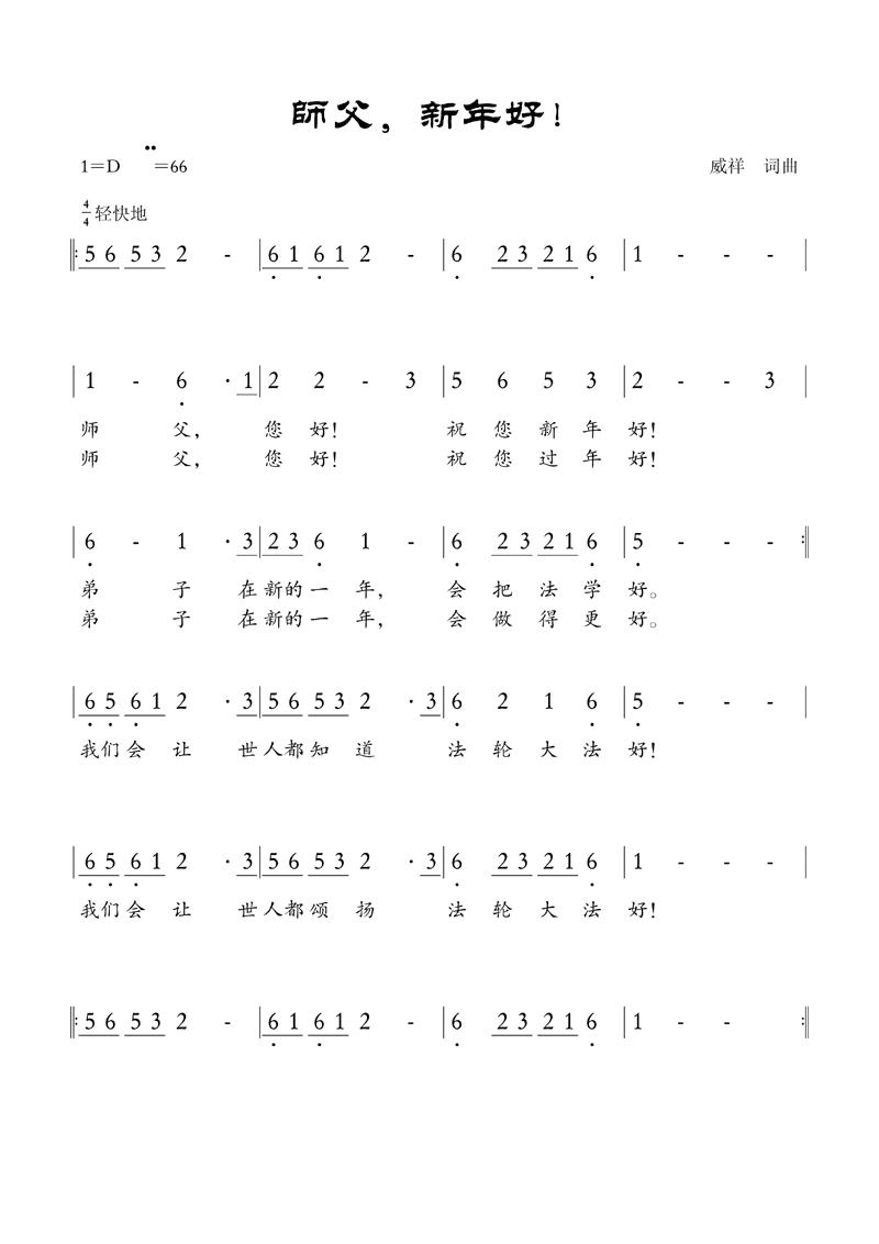 歌曲:师父,新年好!--新加坡大法弟子给师父拜年