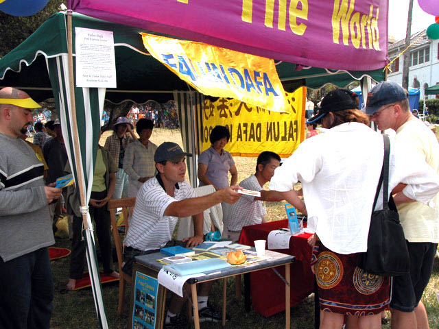 今年,学员们意识到是活动的主要目的,而磁带与录像能有效地告诉人们法轮大法的真相,因而复制了上百张《真实的故事》光盘来分派,人们都欣然接受。在活动结束时,所有的小册子和光盘被发放一空。