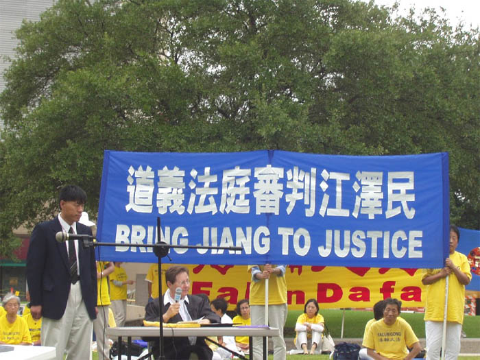 德州大学的学生王晓丹在发言中称她的父亲王治文因修炼法轮功而被判处长达16年监禁。另相关人士读了赵明的声明、李祥春未婚妻符泳青的控词,追查迫害法轮功国际组织的代表亦到场作证发言。