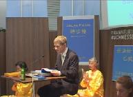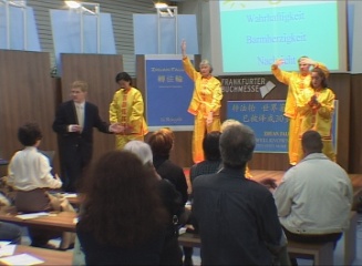 今年的法兰克福书展首次尝试设立十个涵盖各类话题的论坛。在名为“趋势”的论坛上,有两次介绍法轮功的专题讲座,题为“为什么这本书打动了千百万中国人”。一个半小时的讲座上学员介绍了中国的修炼传统,法轮功在中国的兴起和《转法轮》一书的诞生。另外还演示并讲解了五套功法,分别用中文和德语朗诵转法轮中论语的片段,把讲座推向高潮。