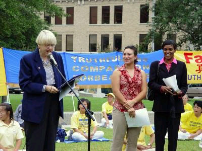这次活动得到了各界人士的关心、支持和鼓励。迄今为止,已经收到几十封从国会议员、德州州议员、休斯顿市政府,及其他城市市长等发来的贺信及褒奖。这些政府官员们高度赞扬了大法给全世界人民带来的身心健康,以及大法对促进社会的和平与稳定所作出的贡献,同时也对大法弟子在最严峻的环境下所表现出来的大善大忍的崇高精神表示钦佩,他们还表示会尽自己的一份力量帮助停止对法轮功的这场残酷的迫害。