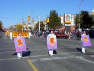 参与这一大型活动的大法学员们也深深地体会到大法弟子是一个整体。锣鼓队、舞蹈队和炼功队由多伦多学员组成。为避开高速公路塞车,舞蹈队的学员早晨4点就起床化妆、赶路。腰鼓队的同修从拿到腰鼓到游行那天,只有五天时间,他们利用业余时间,高密度排练,举胳膊都费力,十分辛苦。凯基纳和滑铁卢市学员主要承担联系服务工作,布置花车等。哈密耳顿学员负责在游行前给观众发放大法简介。学员们主动放下自我,溶入整体的表现,使得游行达到了我们期望的洪法和讲清真相的好效果。