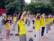 第二阶段:教唱学员创作之大法歌曲,大家正兴致勃勃,突然下了一阵大雨,很快的雨停了,继续我们的活动。优美的法轮功学员创作的歌曲音乐,深深地打动了民众们的心;最后在“法轮大法好”歌声中结束此次的活动。