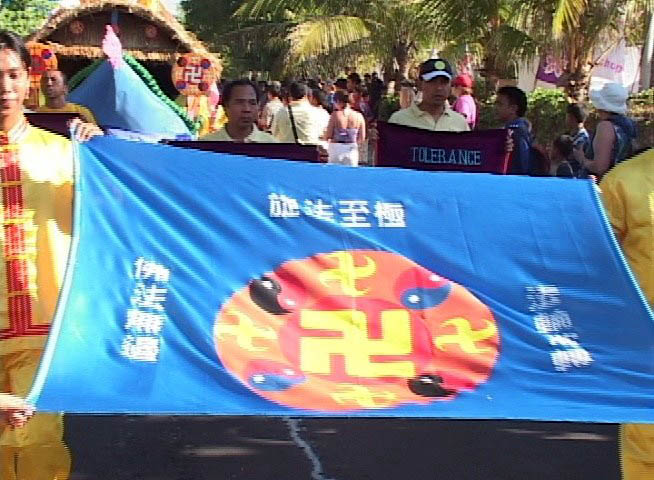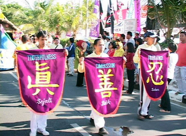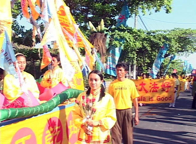 法轮大法出现在印尼巴里岛的游行队列(图)