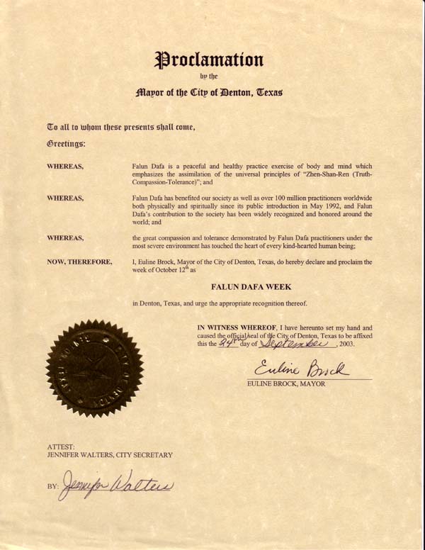 鉴于,法轮大法自1992年5月传出以来已使本社区及全世界一亿多学员身心极大受益;法轮大法对社会的贡献在全世界被广泛认同和嘉奖;并且