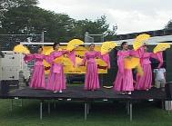 当地的美国人对中国的文化非常感兴趣,尽管天气不佳,时不时地下雨,人们仍兴致勃勃地排队等法轮功学员、书法爱好者陈汝棠先生用毛笔书写的“真善忍好”和他们的中文名字,并小心翼翼地收藏起来。居民们也欣赏到了法轮功学员表演的中国传统的扇子舞、法轮功功法表演和腰鼓表演。6岁小弟子打坐入神的样子及向观众说“法轮大法好”令在场观众赞叹不已。