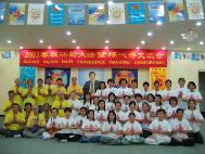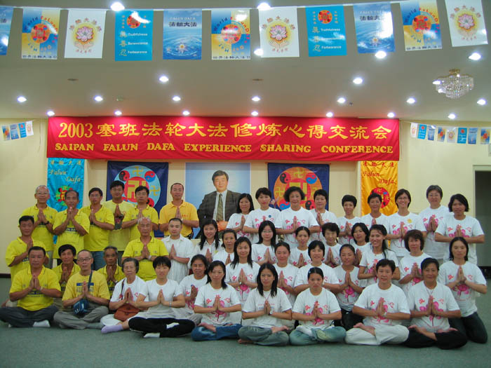下午二点发完正念后,法会正式开始,来自香港、台湾和塞班岛弟子共聚一堂。法会现场布置得很庄严,处处可见塞班岛弟子的用心,尤其法会上挂的横幅,是当地弟子们一针一线亲手制作的。塞班岛弟子的发言,没有任何掩饰,体现出的纯真,使每个香港学员受益良多。
