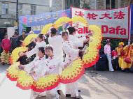 在这次庆典活动中,除了法轮功功法表演,舞狮,扇子舞,笛子独奏等传统节目外,一出揭露江泽民集团迫害法轮功学员的审江短剧激起了众多东西方观众的浓厚兴趣。妹妹曾因炼功而被非法劳教和酷刑折磨的英国居民梁女士及未婚妻至今还被拘押的谢卫国博士作为现场证人加入了本剧的演出。在全球公审江泽民的海报展板前始终都有一些中国人或西方人认真阅读了解列举的江氏集团所犯下的灭绝人性的滔天罪行及全球各地对江泽民的起诉介绍。一位上海来的老人带着小孙女也兴致勃勃地观看了我们的演出,他期盼对江泽民的国际审判就像公审南斯拉夫前独裁者米洛舍维奇一样能最终实现,对作恶者逃不脱现世的惩罚他感到很开心。一位在剑桥工作的日本医生对像法轮功这样传统的东方文化都被迫害深感不平。他意识到让更多人了解事实真象就是在帮助学员。