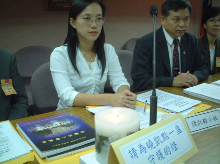林晓凯之妻陈淑雅在记者会中表示,林晓凯今年二十九岁,彰化县(Zhang Hua Magistrate)人,是中兴大学土木水利研究所(Graduate School of Civil Engineering of National Chung Hsing University)硕士,曾任成功大学水文中心(Coastal Ocean Monitoring Center in National Cheng Kung University)副组长,目前辞职准备公职人员特考。他们今年五月刚结婚。林晓凯平日生活严谨,对家庭很有责任感,在大家眼中是正直、善良的好人。绝不可能做任何违法犯纪之事。她紧急呼吁台湾各界及国内外人权组织营救林晓凯,希望中国政府真正维护小老百姓的基本人权。林晓凯失踪至今,中国无任何单位愿意说明,家属也无法与林晓凯联系,大家非常担心他的安危。她呼吁中国政府尽速让林晓凯与家属联络、回到家属身边,并立即停止任何非法拘捕行动。