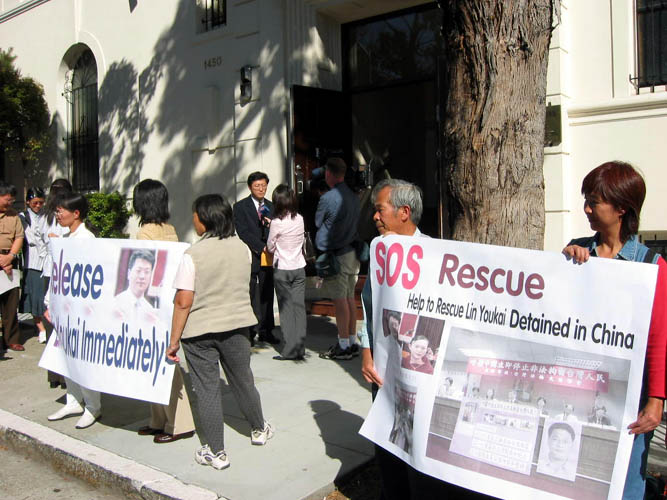 旧金山湾区来自台湾的法轮功学员在发布会上宣读了一份声明。他们指出,林晓凯被拘留并非单一事件。自1999年7月中共前领导人江泽民开始迫害法轮功之后,中国各地陆续传出无数惨绝人寰的迫害,台湾法轮功学员也蒙受其害。声明中说:“我们要求中国当局立即无条件释放林晓凯、李祥春,以及其他被关押的法轮功学员。”期间,台湾法轮功学员曾向领馆官员递交请愿信,但领馆方面拒不接受,并将门紧紧关上。