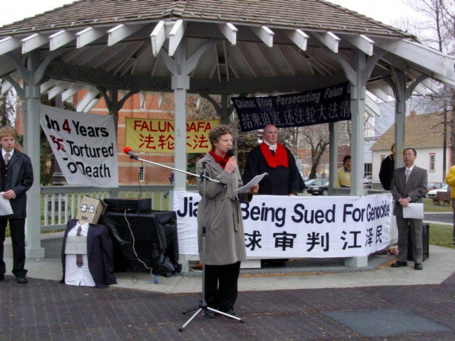 当地时间10:30,“模拟公审”开始。在持续一个多小时的公演过程中,埃德蒙顿市Strathcona区的议员瑞姆-翟夫(Rahim Jaffer)先生到现场观看了话剧,并与法轮功学员进行了深入地交谈。同时,本市的一些主要媒体,如Gateway、CFRN TV、和Global News TV等到公审现场进行了采访,其中,有两家媒体报道了“模拟公审”活动的整个过程。这次活动,也吸引了当地逛公园的市民和过往行人。在演出期间,没有扮演角色的学员则利用机会向行人发放大法真相资料,让更多的民众了解在中国大陆发生的这场针对法轮功学员的邪恶迫害。
