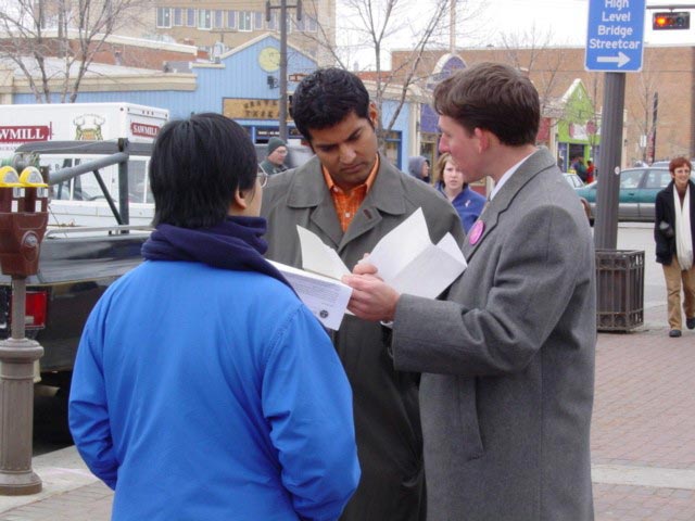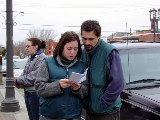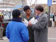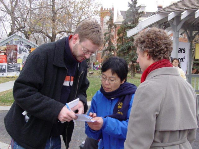 | 学员与国会议员交谈 | 行人阅读大法传单 | |