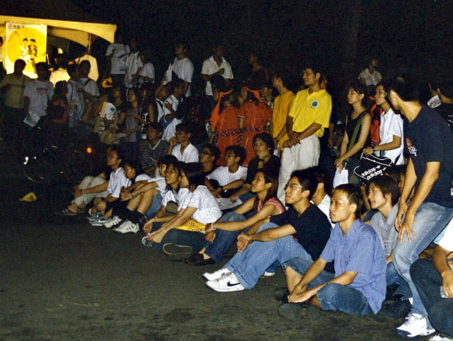 【明慧网2003年10月3日】每年台湾中央大学都会举办社团联展以欢迎新生,法轮功社参与了摆摊和舞台表演,希望让更多人对大法有正面印象。我们发的传单正面为法轮功社团简介,背面为控江案近况,藉这个机会。