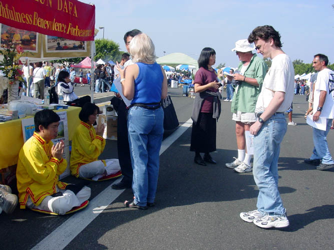 【明慧网2003年10月8日】10月2日那天,一位同修看似偶然的在网上查到两天后的星期六,也就是10月4日,是一年一度的圣地亚哥市米拉密萨区街市。根据以往统计,这个街市的规模大约会吸引15000人前来,但根据网上信息,预定展位的日子早在六月底就截止了。他决定打电话试试能否临时订到展位。结果不出所料,果然拿到了一个展位,而且位置颇佳。