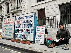 据中央社伦敦10月7日报导,由二十余位法轮功学员轮流在伦敦中国大使馆前担任的长期静坐抗议行动,已于今天经进入第四百九十一天。法轮功的一名学员孙湛说,此一抗议行动将一直持续下去,直到北京当局停止迫害法轮功学员为止。