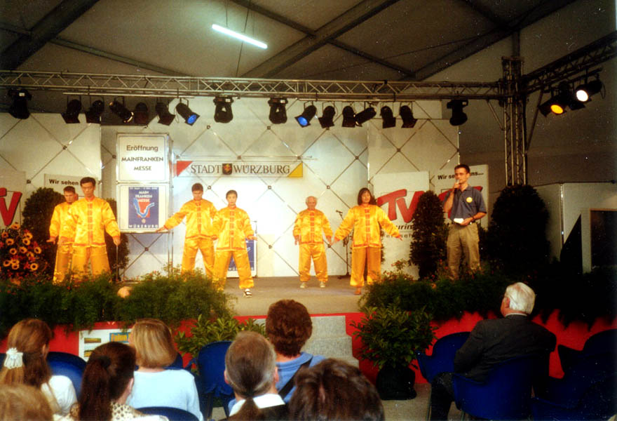 大家平静和谐地表演了五套功法,一位学员向来宾解说动作及要领。最后十分钟他在台上向观众解答提问。诸如:为什么法轮功受到迫害?什么是法轮功?在哪可以学功?等等。