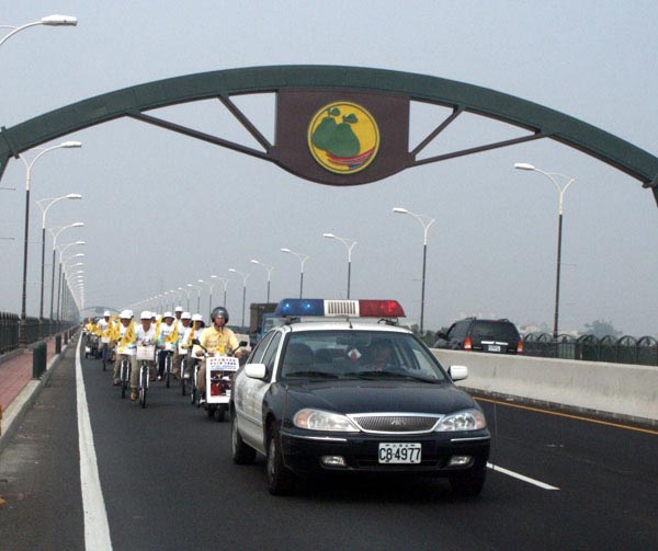 | 当地警车前后引导通过麻善大桥 | 于台南县永康市农会前举行记者 |