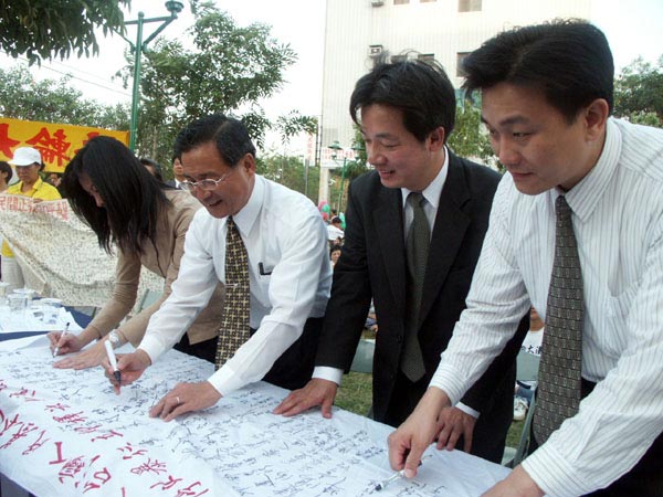 | 台南市长许添财及多位民意代表签名声援 | 台南市长许添财呼吁让所有法轮功学员都能回到自己的家园 | 学员表演了行动剧《江泽民的恶梦》 |