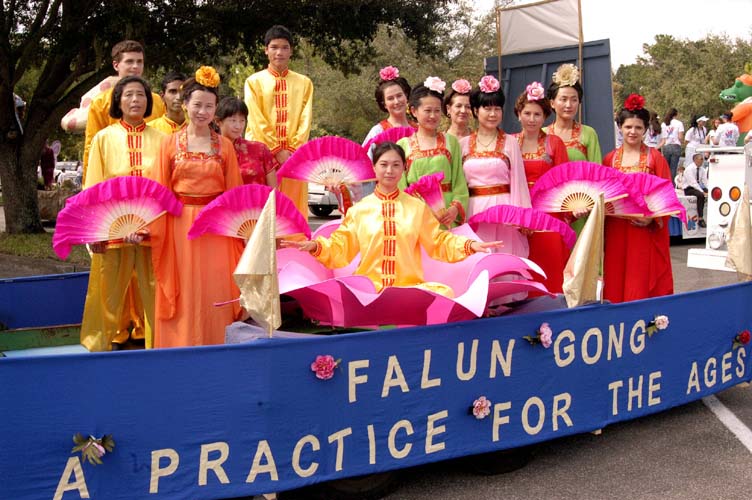 【明慧网2003年11月12日】11月7日,佛罗里达州的法轮功学员参加了位于Gainesville的佛罗里达大学“返校节”庆祝活动。佛大校报及当地最大的报纸均以醒目的图片显著报导了游行中的法轮功学员。