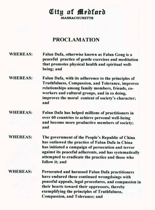 鉴此,我,梅得福市市长迈克尔-麦可格林(Michael J. McGlynn)在此郑重宣布2003年11月为本市的