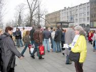 ,声援近百名被关押在吉林监狱绝食的法轮功学员,要求立即释所有被非法关押的法轮功修炼者,并呼吁社会大众关注此事,给予紧急援助。2003年11月15日,哥德堡的大法弟子又一次来到市中心的繁华地带,向过往行人征签,呼吁帮助营救大陆法轮功学员。路人们被江氏集团所采用的残酷手段所震惊,手拿签名簿的大法弟子身边常常围着一群人在听真象,走了一群又围过来一群。当天很多瑞典人在“支持对江罗一伙的起诉”等呼吁书上签名。