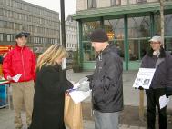 【明慧网2003年11月17日】连日来,瑞典法轮功学员利用业余时间,在中国大使馆和领事馆前和平抗议江氏集团对法轮功学员的残酷