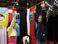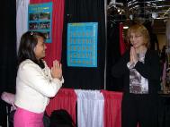 很多附近展位的工作人员也趁着空闲时到我们展位来聊天,并询问功法及炼此功法的意义与目的。有位在隔壁展位工作的女士在与学员交谈后若有所感的谈到:我已注意你们的展位很久,一直想找时间过来跟你们谈谈。她又接着说:她觉得生活没意义,每天不是赶着工作就是回家做家事,没个精神上的依靠。她的双眼泛着忧郁的神情。可是当她与学员交谈听取介绍后,她了解法轮功不但可增进身体健康,并对精神层面有莫大助益,她笑逐颜开。学员给了她一些大法资料及炼功点的联络讯息,她双手紧握资料连声道谢后离去,不久她的同事也过来要了大法介绍材料,并向学员问及学功后的感想。