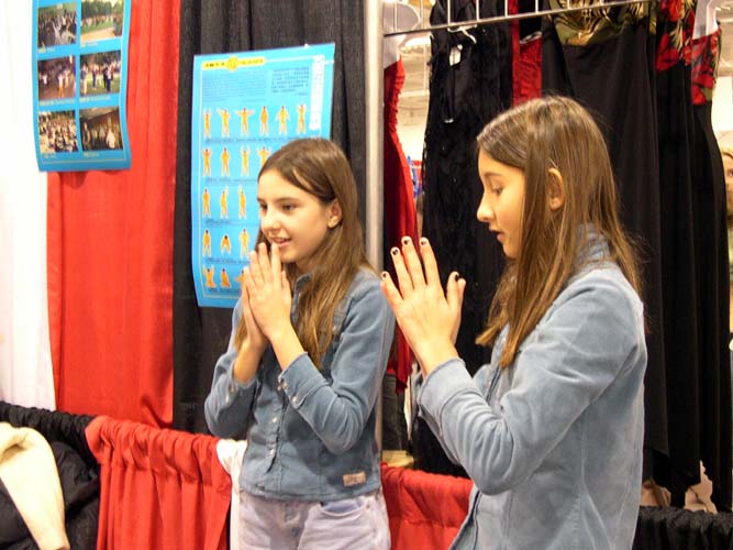 甚至连当天的展览快结束时,还有孩子跑来要求学打坐。大法的美好吸引着天真的孩子们。