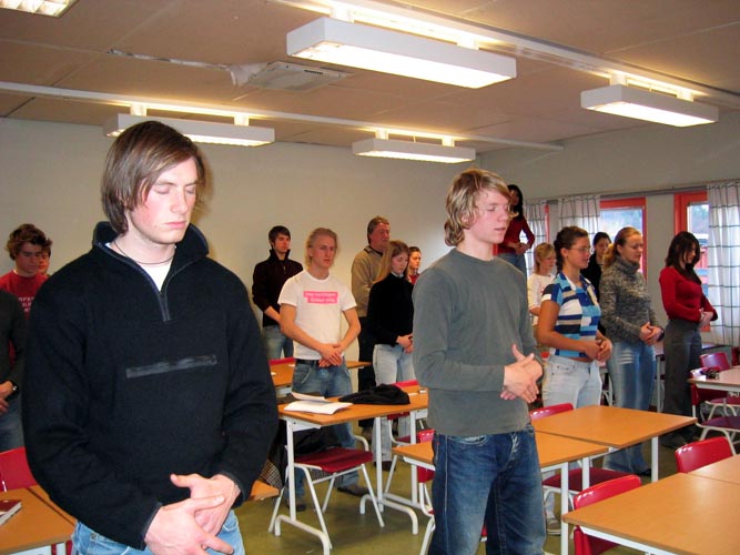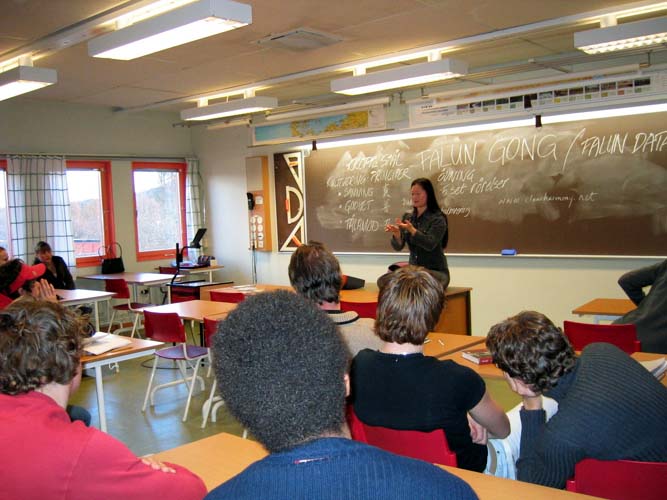 【明慧网2003年11月19日】2003年11月17日,两名瑞典大法弟子应邀来到莱荣市的高中学校,先后在宗教信仰课和科学研究课上介绍法轮功。