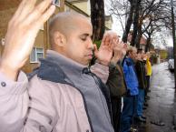 应当地晚报的摄影记者之邀,斯多里、泰伦斯和另一位西人女士伊丽莎白在领事馆门前炼功。一个中国领事馆的工作人员走出领事馆门外干预正在炼功的学员并声称这片空地归他们使馆私人所有,不能在这里驻足、炼功,还说要叫当地警察。记者们感到非常吃惊,反问这位工作人员法轮功学员的做法符合当地法律有什么不对。学员们特别是鼓手斯多里则与领馆人员讲真相。当新!唐!人:电视台摄像记者赶到现场时该工作人员便很快退回领馆里面。
