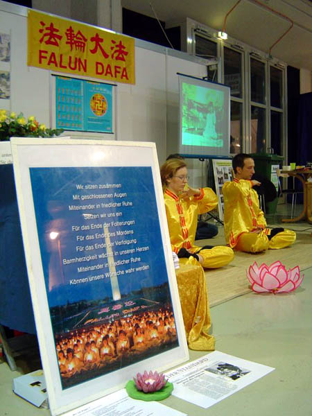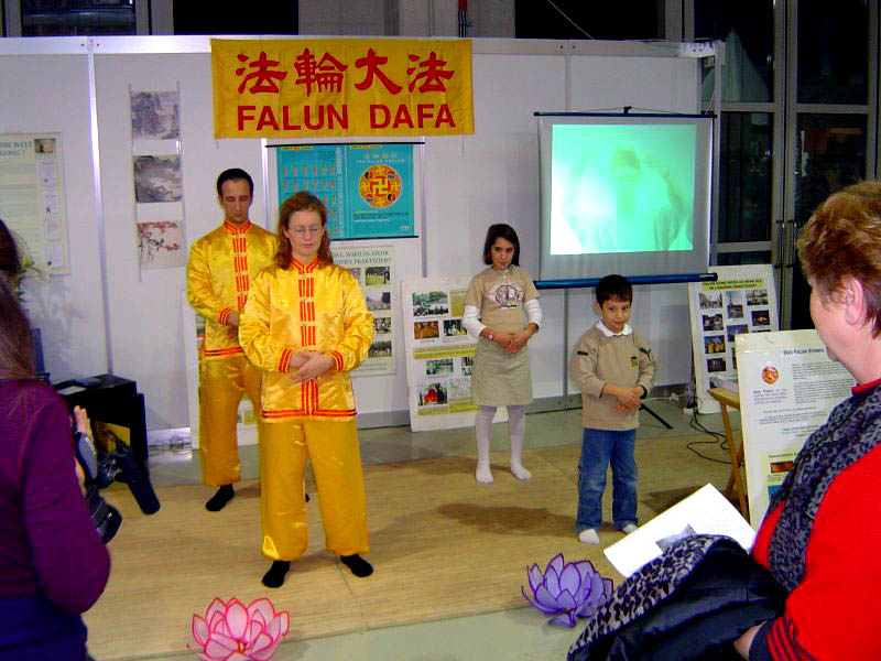 【明慧网2003年11月22日】11月14日至16日,奥地利大法弟子应邀参加了在维也纳新城举办的一年一度的健康博览会。这已是大法弟子第二次应邀参加。今年博览会组织部门还专门安排大法弟子举办了三场各30分钟的功法演示。祥和的功法深深吸引了众多的与会者,许多人纷纷询问如何学功修炼。当观众们了解到江氏集团对大法弟子的残酷
