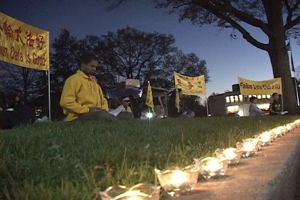 法轮功学员们每个人带来的真象资料几乎全部发完。当地的华人媒体大.纪.元;时报等作了采访,美利坚大学的校报“鹰报”还特意派摄影记者来纪录这烛光映照的感人一幕。