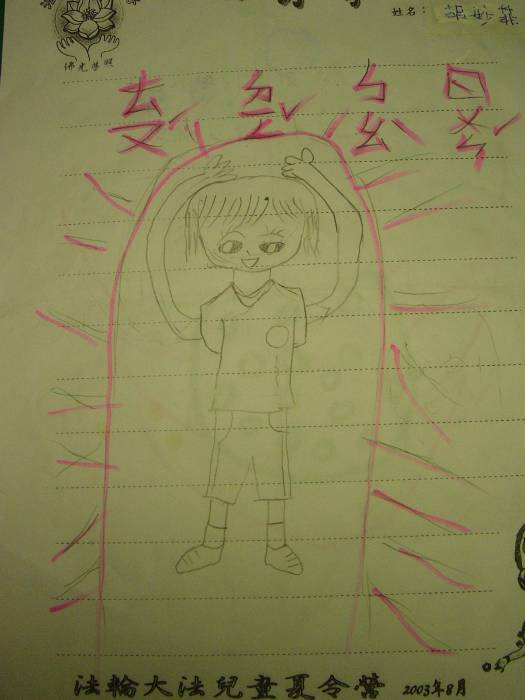 凯程:……我腹泻了两年,炼了两个月,全好了,脸变得粉嫩、光滑、白皙,李老师说人要做到「真、善、忍」,去掉执著心,我本来遇到了挫折,想到师父的话:忍;「法轮功」使我身体健康、心性提高,成为好孩子。