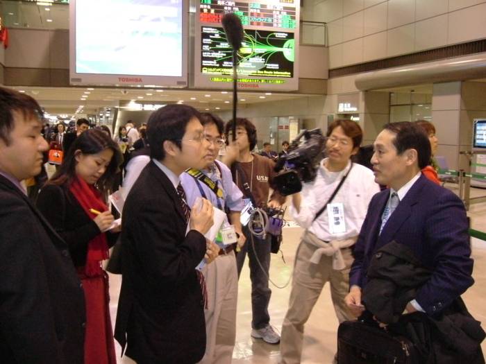 蜂拥而至的中日文电视台、电台、报纸记者,将容子团团围住提问。容子表示,她非常感谢日本政府、日本驻华大使馆、各界人士关心、帮助,感谢救援会的各位,感谢全世界法轮大法同修们,感谢家人们的关心,谢谢丈夫的不懈努力,使得她终于脱离那个巨大精神压力的地方,回到自由安全的日本。当被问到回日本的感受,她说:现在我觉得很轻松、安全,自由地保持自己的信仰。在失去自由的一年半中,也让我真正坚定自己对法轮大法“真、善、忍”的信仰。