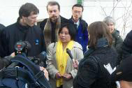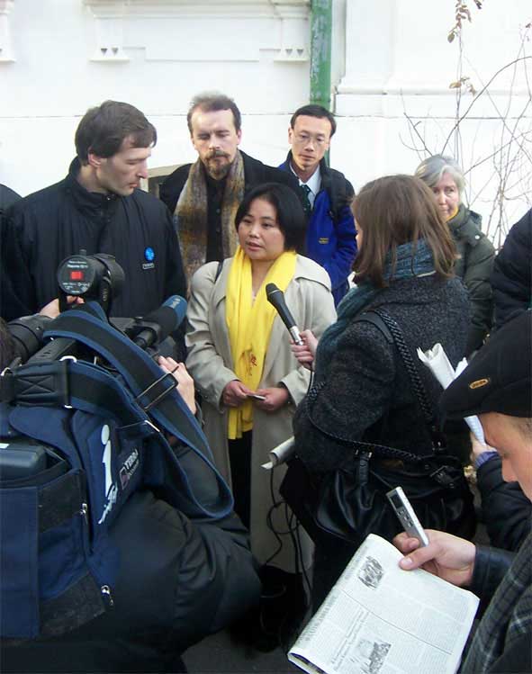 【明慧网2003年11月29日】乌克兰的切尔卡丝市电视台于2003年11月26日晚和27日早两次播出了 “章翠英-中国传统画艺术家”电视片。片中介绍了章翠英女士的画艺生涯,修炼法轮功身心受益,和她只为修炼法轮功说句“法轮大法好”而被中国当局非法关押8个月的遭遇。该节目使更多的人关注法轮功在中国受到的,也有许多人知道章翠英女士正以个人名义向联合国起诉迫害法轮功的元凶江××。