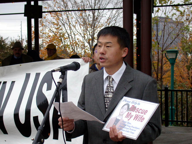 法轮功学员吕朝晖呼吁营救国内受迫害的妻子