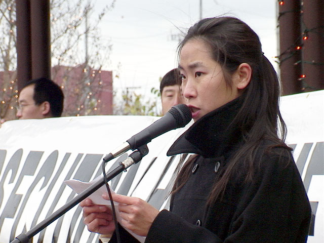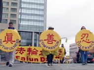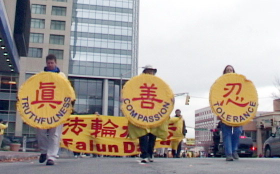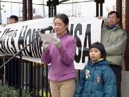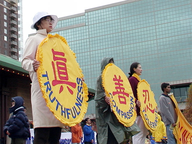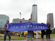 【明慧网2003年11月29日】11月28日上午,近千名法轮功学员冒着寒风冷雨在美国乔治亚州亚特兰大奥林匹克公园召开新闻发布会,在感恩节家庭团圆之际,呼吁帮助营救在中国被非法关押的修炼法轮功的亲属们,要求中国立即停止对法轮功的