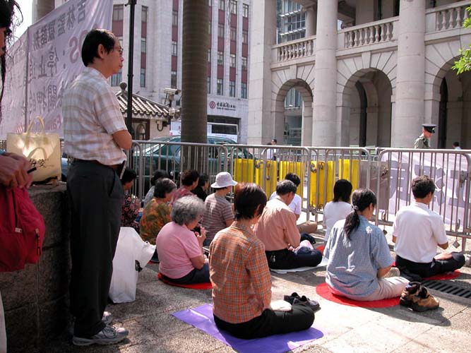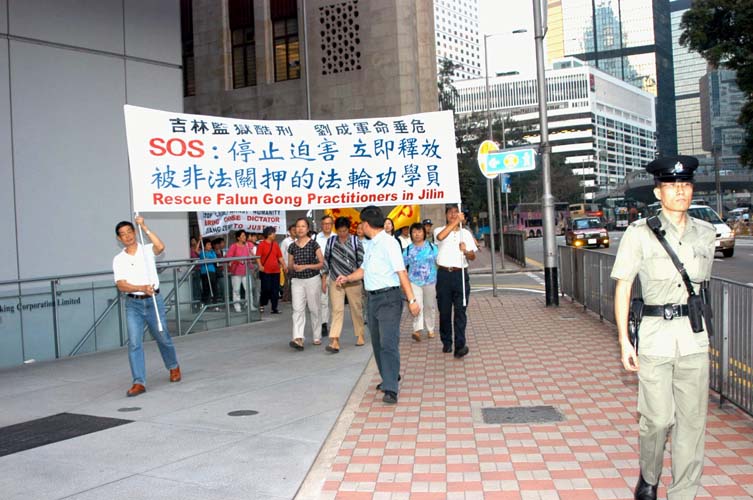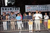 5日星期三,立法会开会前,法轮功学员进行静坐,声援在吉林监狱里绝食抗议残酷迫害的大陆学员。他们展示呼吁紧急救援的横幅及展板,并向前来开会的议员们递交请愿信,希望议员关注大陆民众的生命安全,尽力制止对法轮功的镇压,并促中国当局释放所有被关押学员。