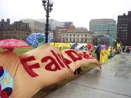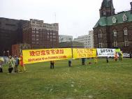 多伦多法轮功学员李卓夫说,“今天虽然遇到风雨,但是没有阻止我们传达和平反迫害的理念。我们希望温家宝和更多的中国人能够看到这种理念。”